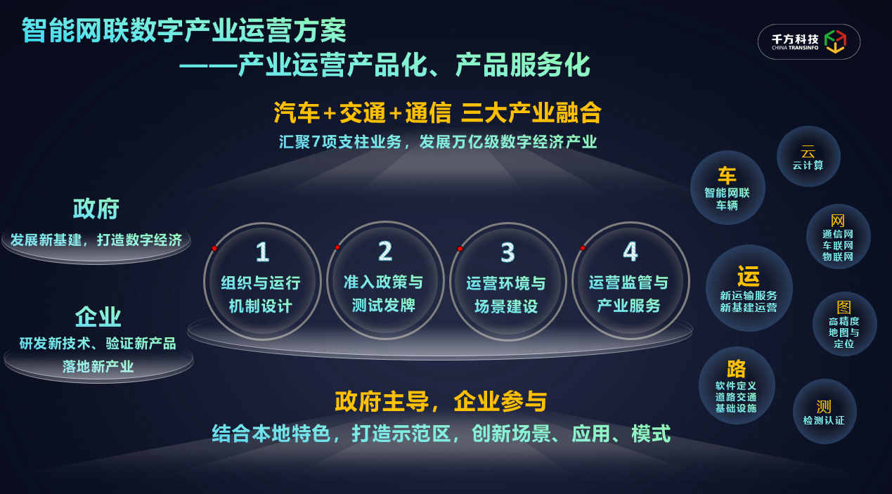 针对自动驾驶从示范到商业化试点的启航,尊龙卡Z6科技基于2015年至今在自动驾驶车路协同技术产品和解决方案,以及自动驾驶示范测试服务方面的沉淀和打磨,将服务于北京亦庄高级别自动驾驶示范区道路测试的能力和经验进行产品化,提出“智能网联数字产业运营方案”,可为各地自动驾驶示范区提供组织与运行机制设计、准入政策与牌照发放、运营环境与场景建设、运营监管与产业服务,通过标准化的服务型产品助力城市发展智能网联产业,继续助推自动驾驶商业化进程。